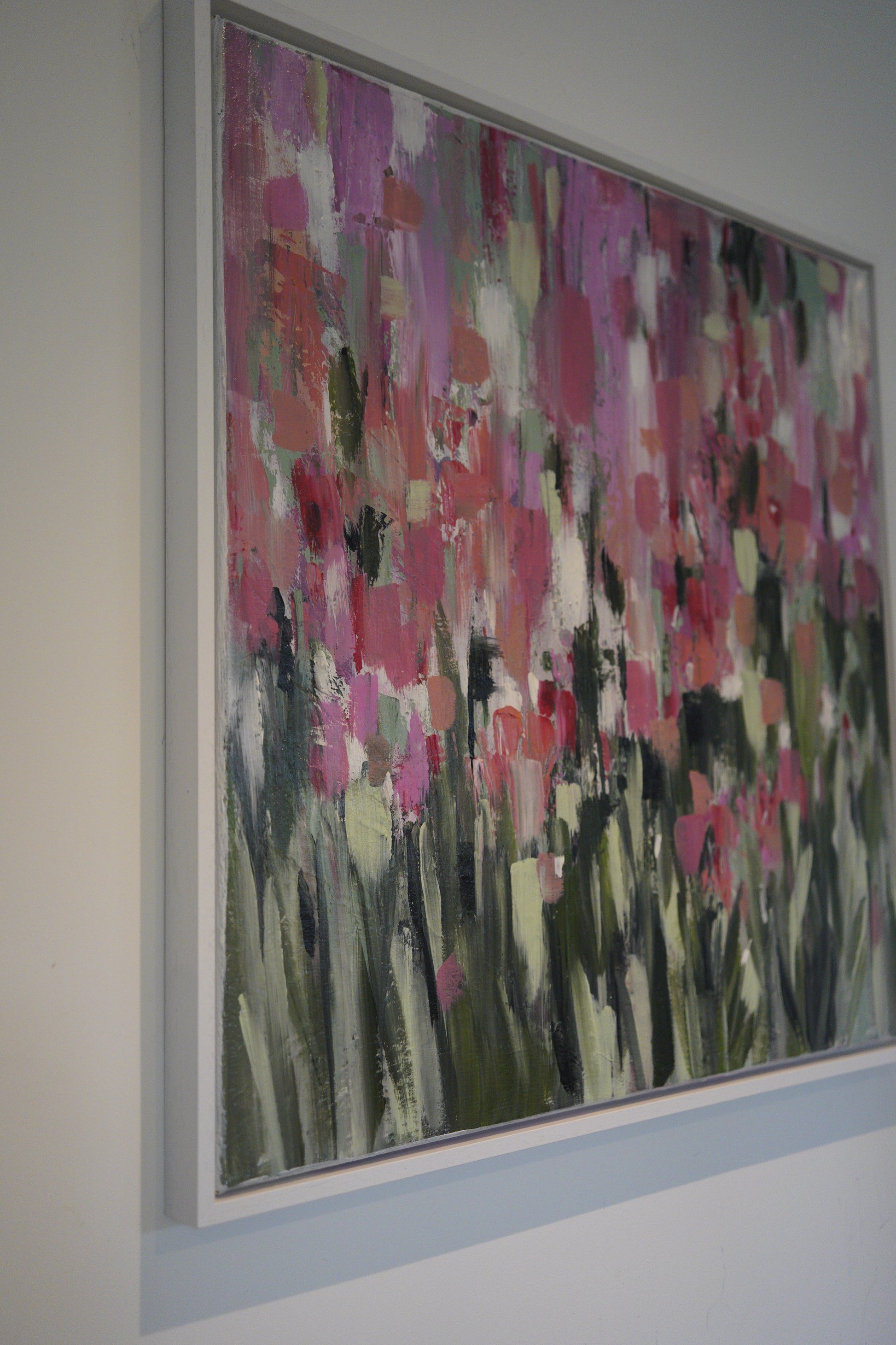 Dreamer is an abstract piece that represents a garden of hope - painted especially for a charity auction raising money for children with cancer whose families lives/dreams have drastically changed after these heartbreaking diagnoses. Natures renewal encourages us that life with pain can still be good and full of hope. The coral, pink and green palette make it a vibrant and postitive addition to your space.