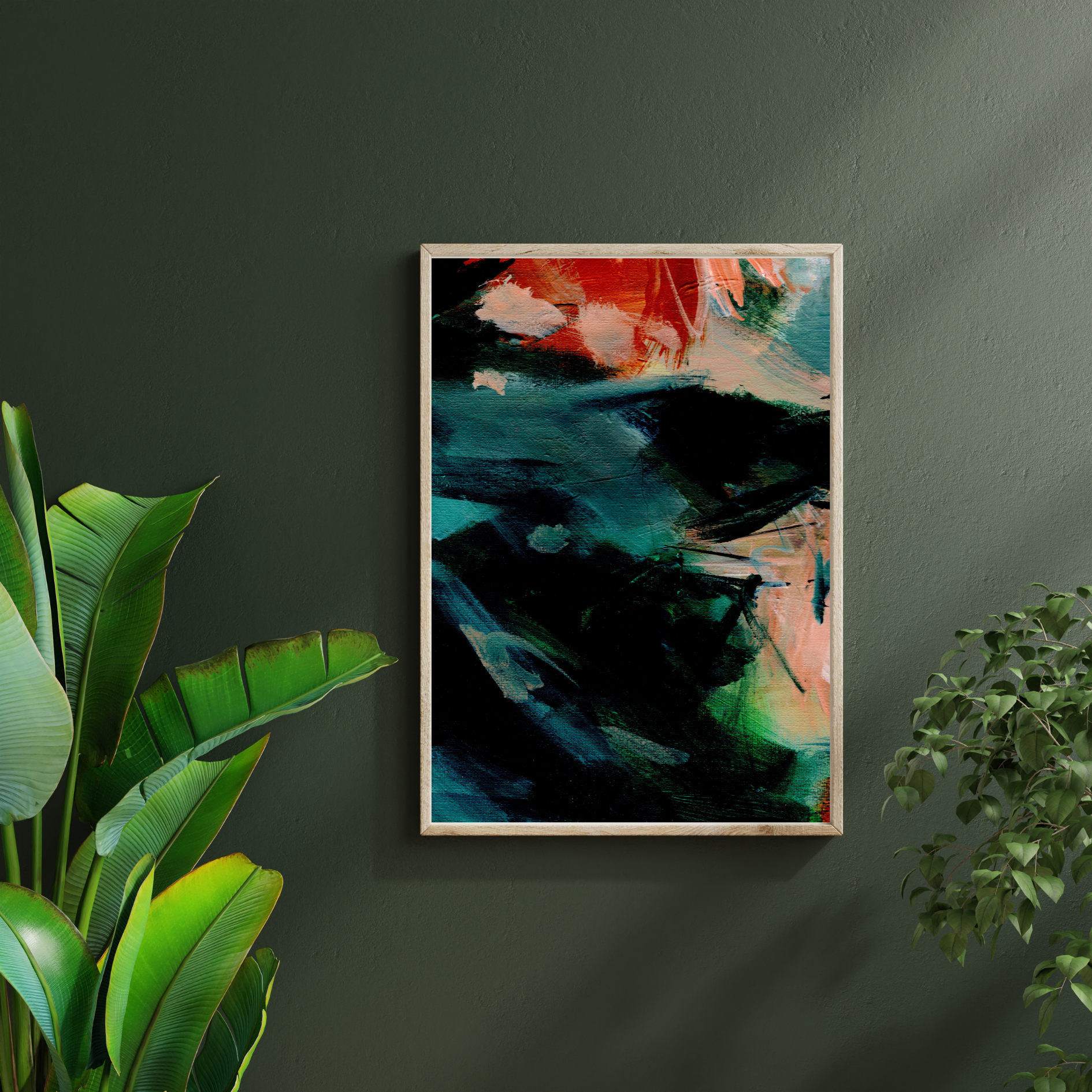 On Trend with Pantones Colour of the Year - 'Peach Fuzz'- this abstract work is moody, tropical and full of body. Expect to see brushstrokes and canvas texture giving an authentic feel to these canvas prints.