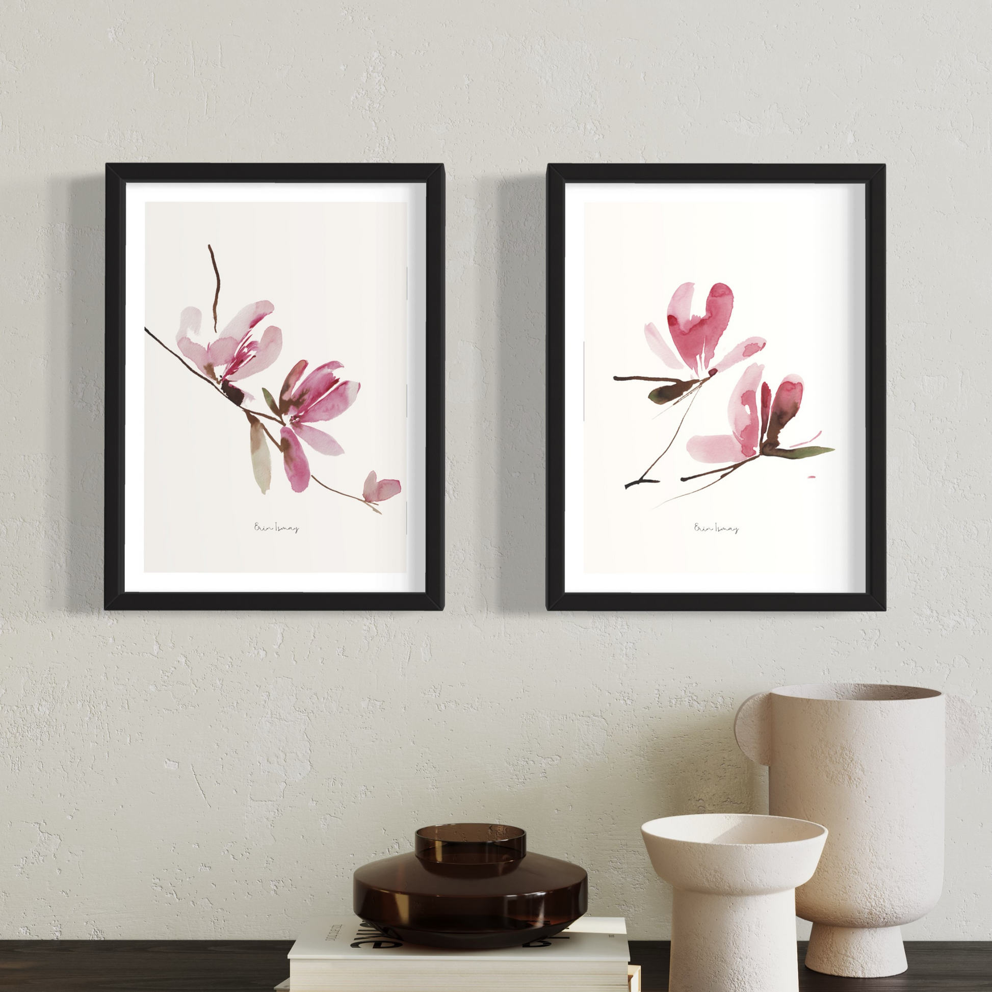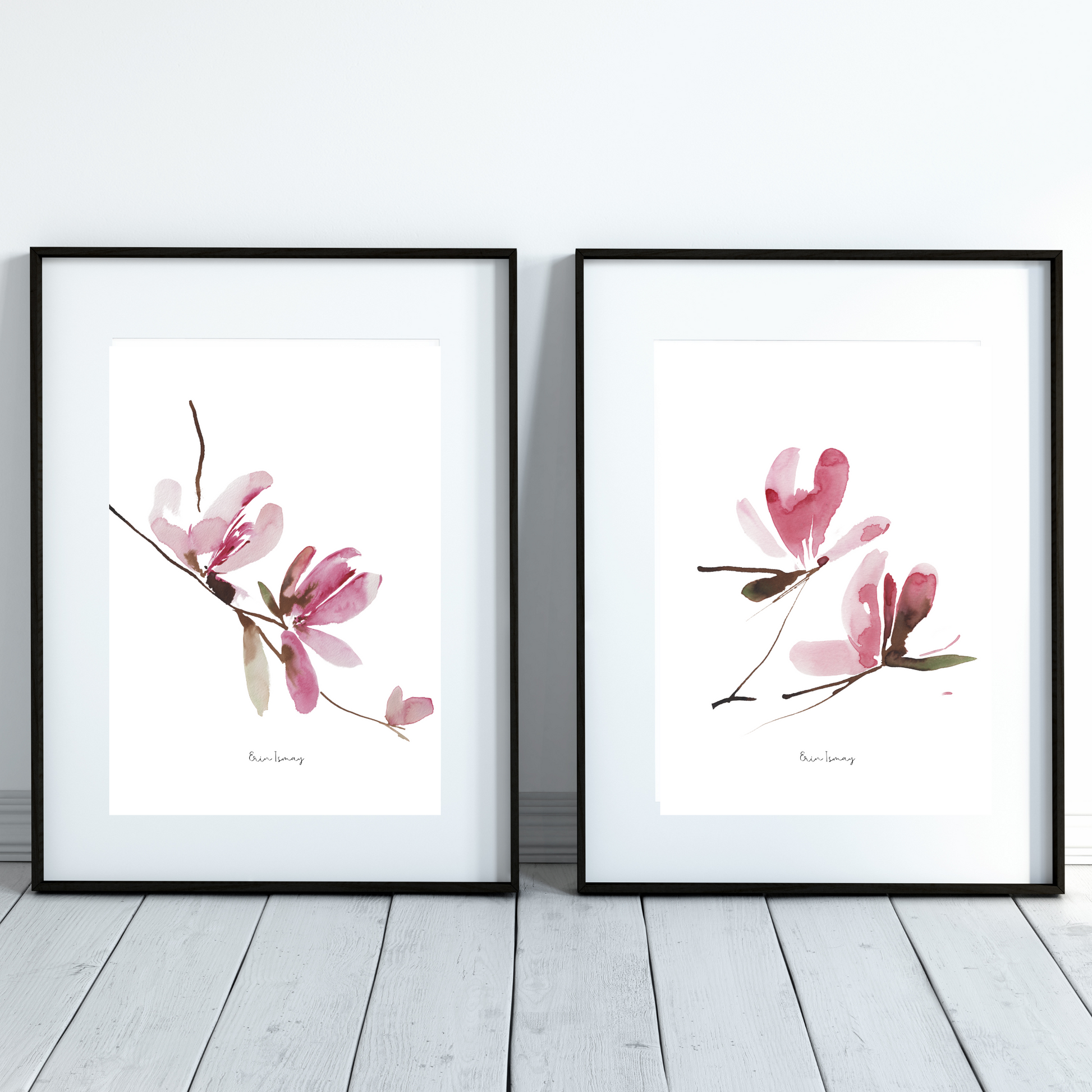 Pink Magnolia Watercolour Print- 2 Piece Set