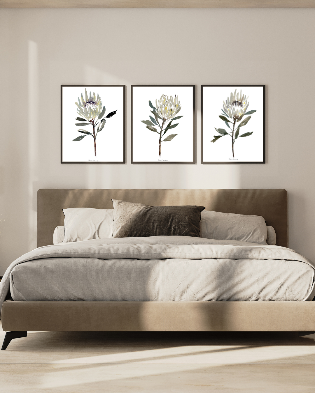 White Protea Watercolour Print - 3 Piece Set